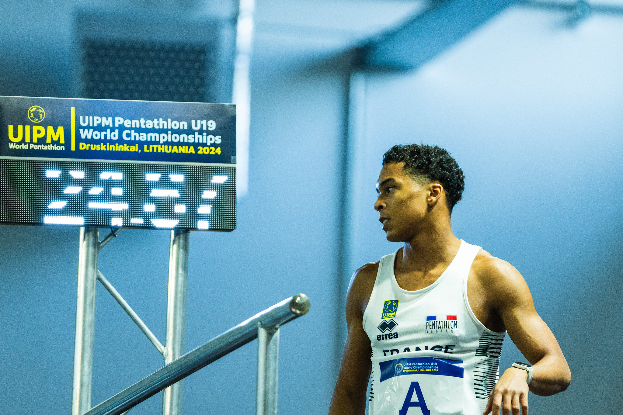 Mathis Issaka-Idé Large, champion du monde U17 en 2023, a performé à l’obstacles avec le 4e temps en 24″87. Le licencié du PM Perpignan a ensuite été 14e ex aequo de l’escrime avec 15 victoires et 15 défaites. Puis, il a nagé en 2’06″98 soit le 11e chrono. Il a terminé son pentahlon par un Laser Run effectué en 11’10″18. Il n’a pas eu à se donner à fond lors du dernier tour et est arrivé avec un groupe imposant à l’arrivée.
