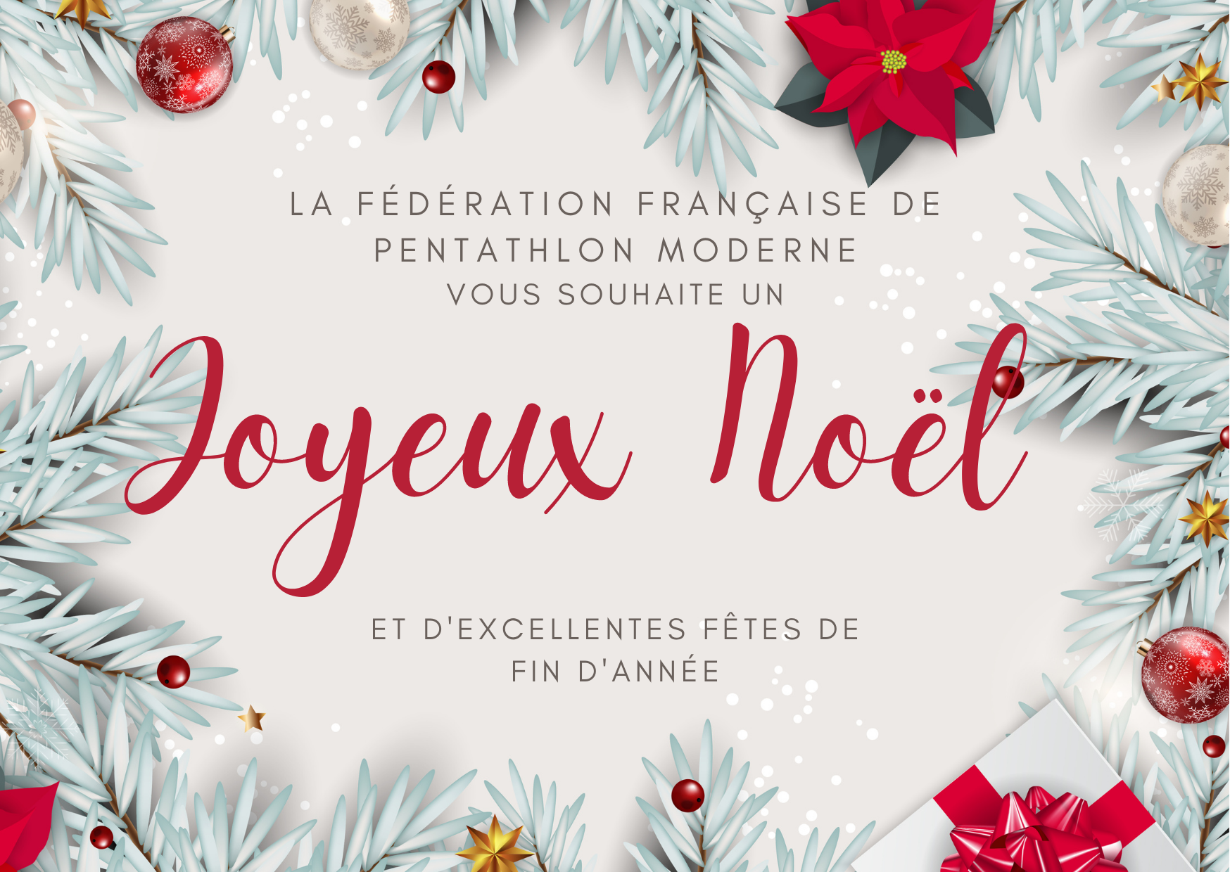 La Fédération Française de Pentathlon Moderne souhaite un excellent Noël à l’ensemble de la famille penta, ainsi que d’excellentes fêtes de fin d’année.