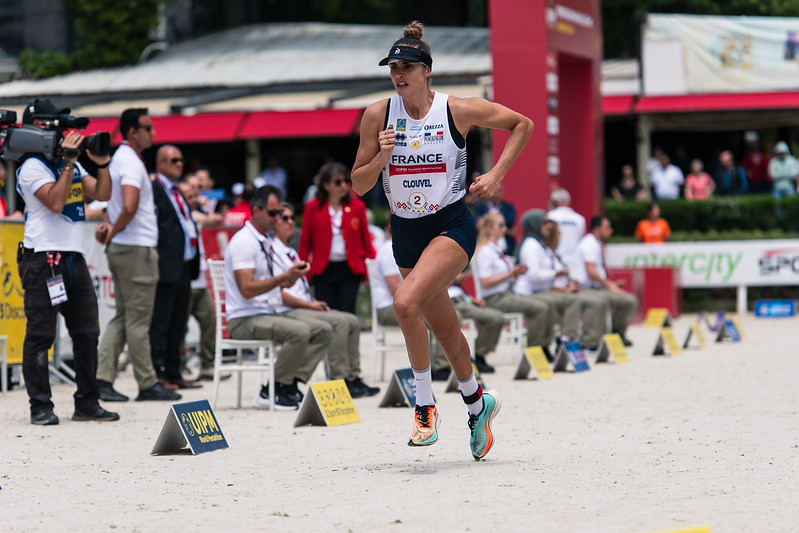 Plus tôt dans la journée, Marie Oteiza et Élodie Clouvel entamaient la finale aux deux premières places du classement grâce à un très bon Ranking Round où elles ont glané respectivement 250 et 235 points. Les deux compatriotes ont gardé ces positions jusqu’au Laser Run.