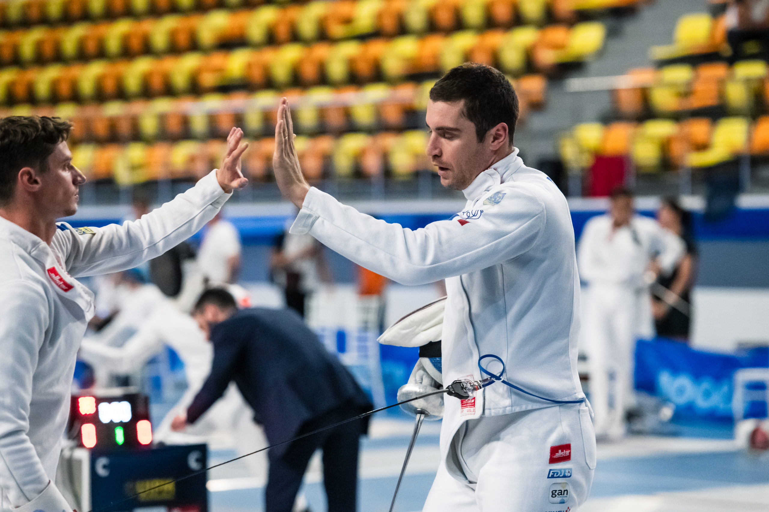 Valentin Prades a remporté le Ranking Round, il a inscrit 245 points soit 23 victoires et 11 défaites. Pierre Dejardin, vainqueur de la dernière Coupe du monde à Sofia, s’est classé 17e ex aequo avec 215 unités, il a eu un bilan équilibré de 17 succès pour 17 revers. Jean-Baptiste Mourcia a fini 24e ex aequo avec 205 points, il a gagné 15 assauts et en a perdu 19.